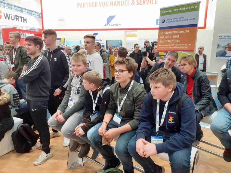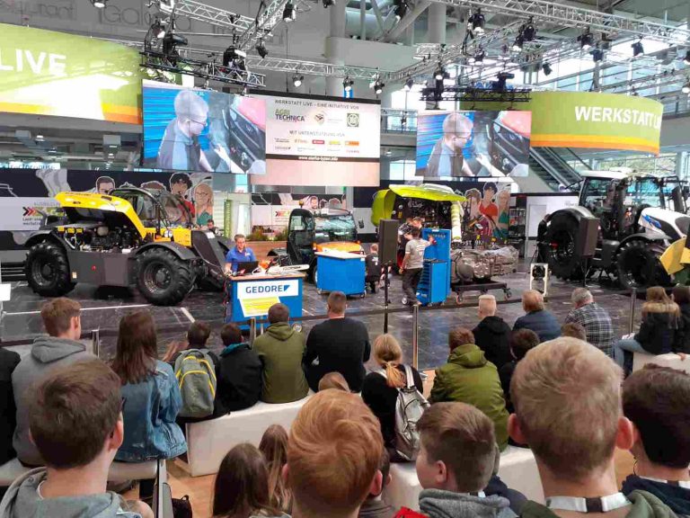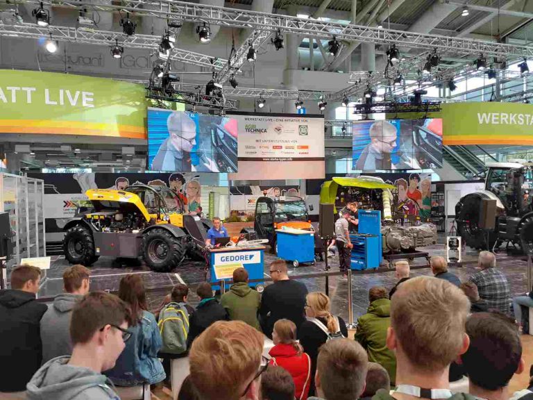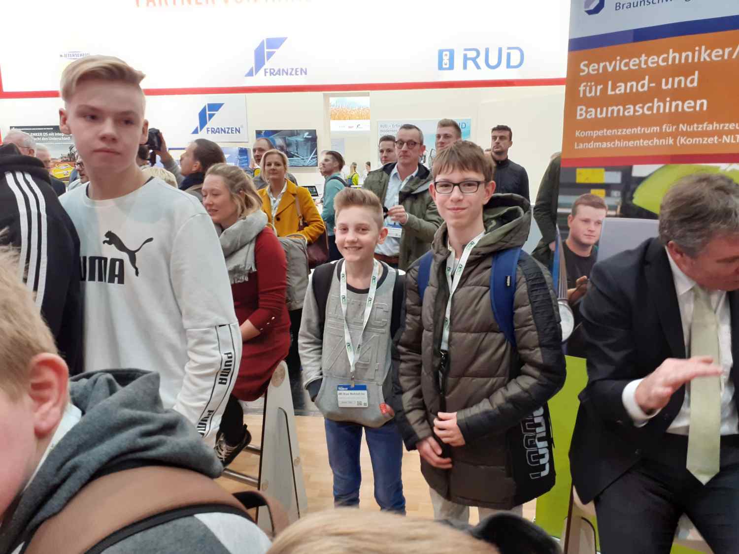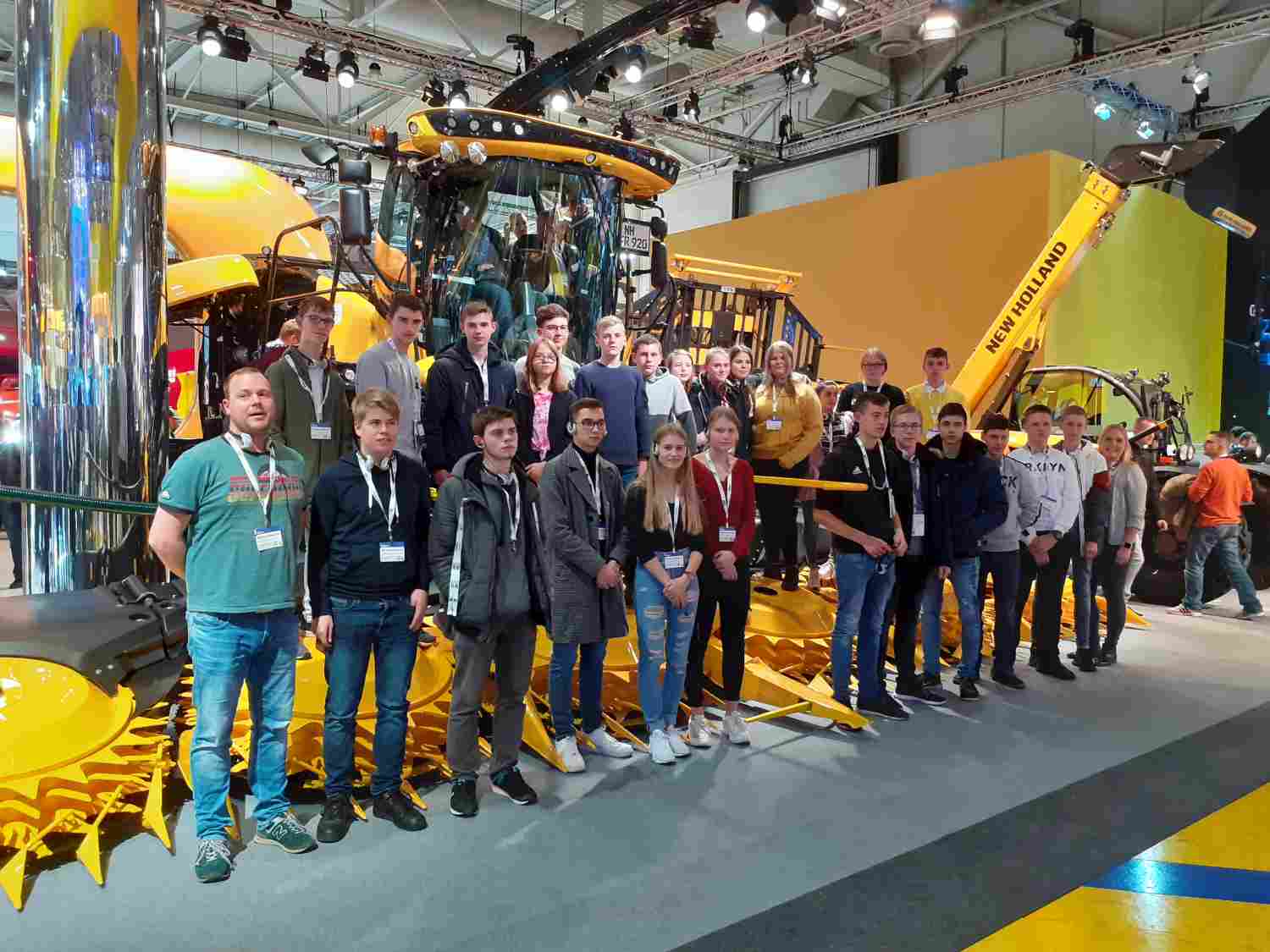 Auf Einladung von August Bruns Landmaschinen aus Cloppenburg bot sich die Möglichkeit für unsere Schülerinnen und Schüler einen Tag auf der Weltleitmesse der Landtechnik die Agritechnica zu besuchen. Nach der Ankunft auf dem Messegelände in Hannover wurden die Schülerinnen und Schüler direkt zum Projekt „Werkstatt live“ gelotst. Der Bundesverband LandBau Technik e.V. hat das Projekt gemeinsam mit großen Herstellern wie New Holland ins Leben gerufen, um auf das Berufsbild Land- und Baumaschinenmechatroniker/-in zu sensibilisieren und detaillierte Einblicke in die Ausbildung zu geben. Es wurde auch praktisch an Maschinen gearbeitet und dadurch das abwechslungsreiche Arbeitsfeld anschaulich gemacht. Beispielsweise konnten die Schüler mit VR-Brille erste Praxisversuche durchführen.