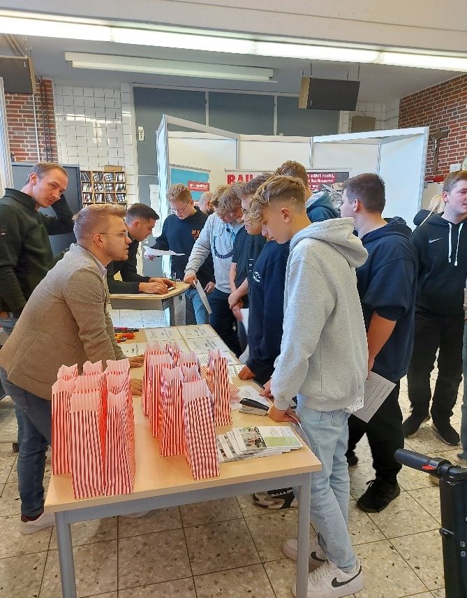 So war am 30.09.22 der Handwerkstag, welcher in Kooperation mit den folgenden Firmen und Trägern stattgefunden hat: BBS Technik, Elektro Tensing, CSW, Gemüsebau Mählmann, Agentur für Arbeit, BOC Straßen und Tiefbau, Sieverding, Grüne Leuchte, Kreishandwerkerschaft, Agentur für Arbeit, Landkreis Cloppenburg. An diesem Tag hatten insgesamt 97 Schülerinnen und Schüler der Klassen 9 und 10 die Möglichkeit sich an verschiedenen Ständen über die angebotenen Ausbildungsberufe in der Gemeinde Cappeln zu informieren. Schirmherr war der Bürgermeister, Marcus Brinkmann.