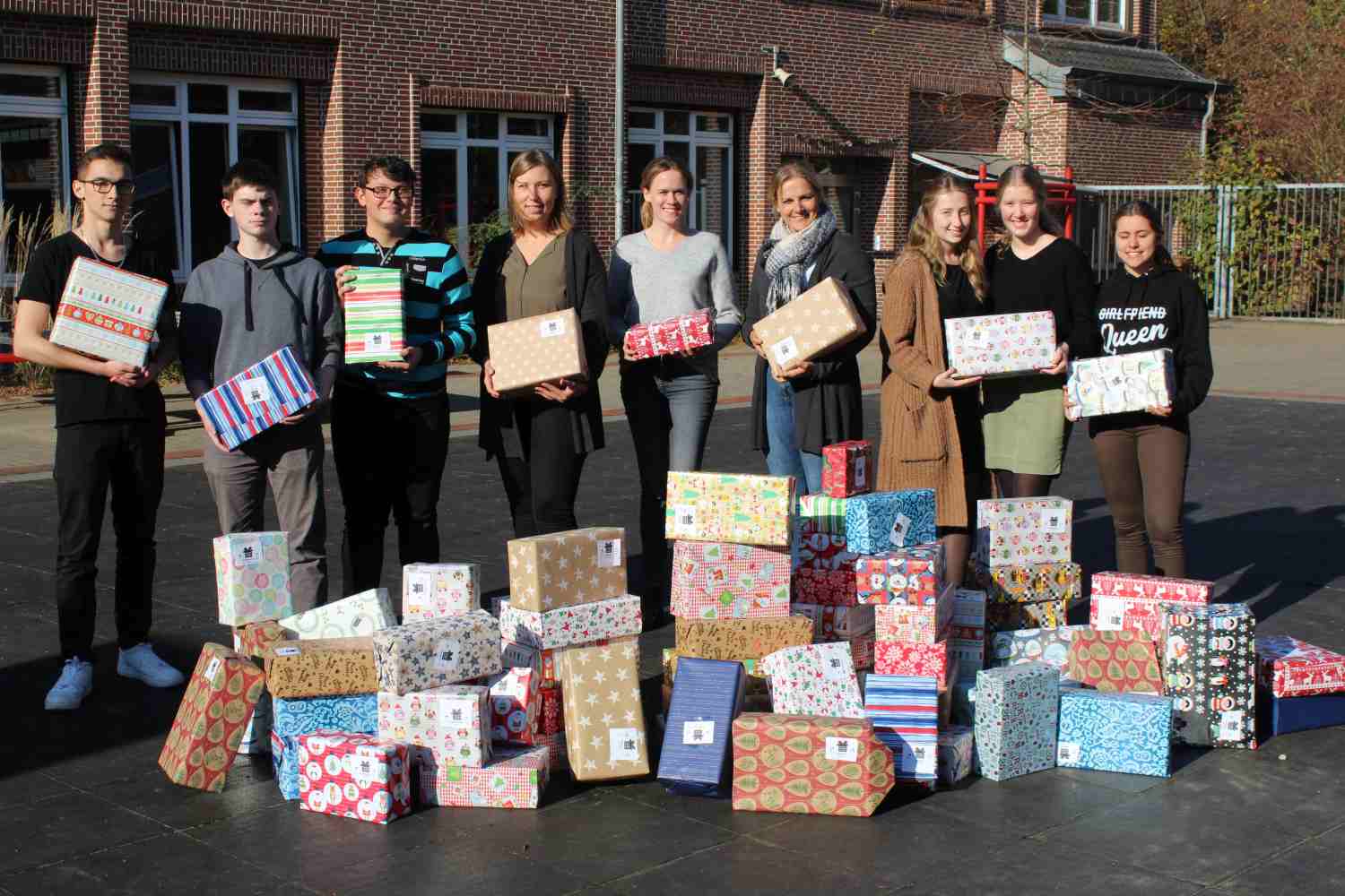 So wuchs innerhalb kürzester Zeit vor Oberschulrektorin Petra Brokamp ein großer Berg wunderschöner Päckchen, die nun bereit sind, nach Osteuropa gebracht zu werden. „Wenn ich meine Geschenke auspacke“, so eine Schülerin, „dann werde ich an diese Kinder denken und hoffen, dass sie sich genauso darüber freuen, wie ich.“