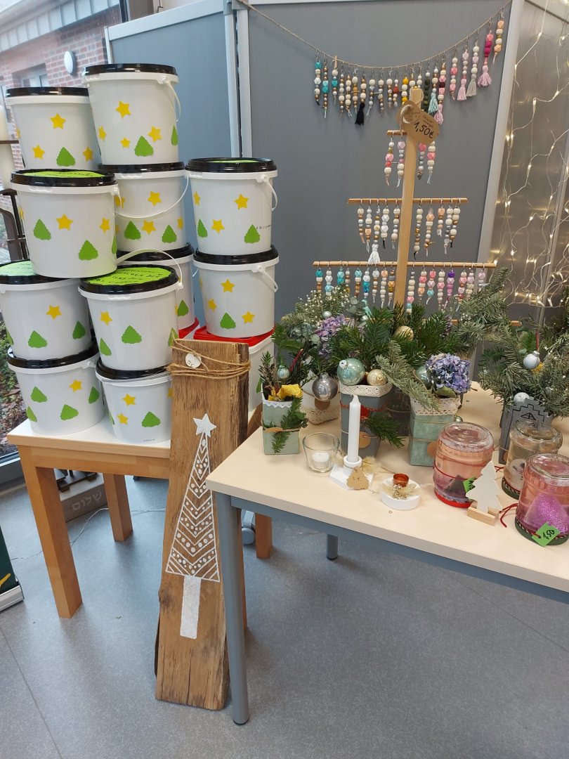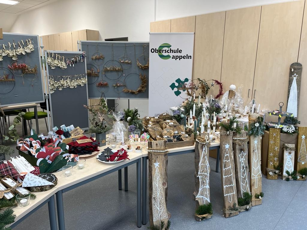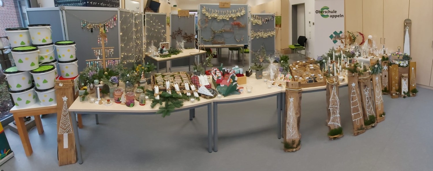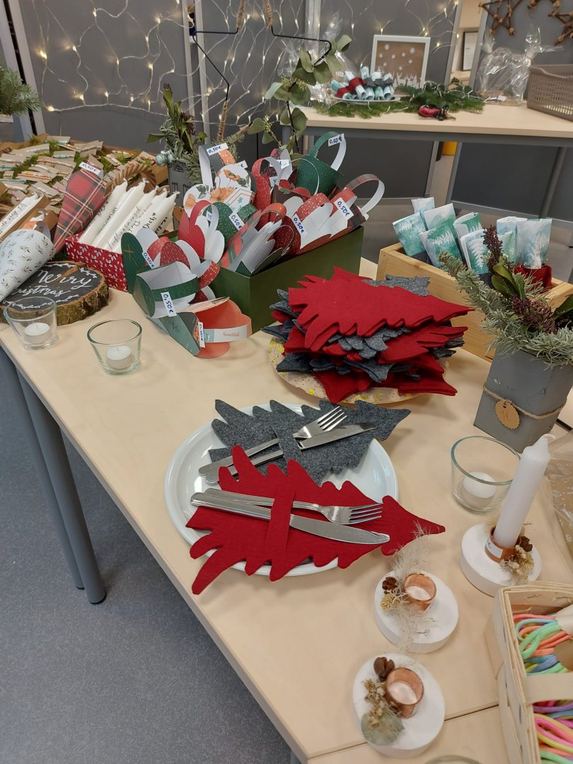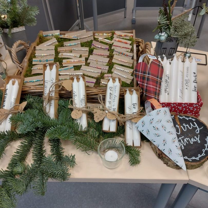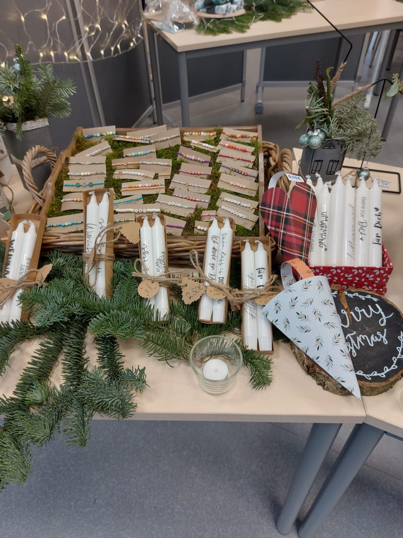 Der Advent stand vor der Tür, als am Freitag, den 25.11.22 ein Projekttag dafür genutzt, um verschiedene selbstgemachte Dinge für den Verkauf auf dem Weihnachtsmarkt vorzubereiten und uns auch schon mal ein wenig auf die Weihnachtszeit einzustimmen. Außerdem wurde bereits das Schulgebäude und die einzelnen Klassenräume weihnachtlich geschmückt. Die Fotos zeigen die erfolgreichen Bastelergebnisse der Schülerinnen und Schüler. Der Erlös wird einem guten Zweck gespendet.