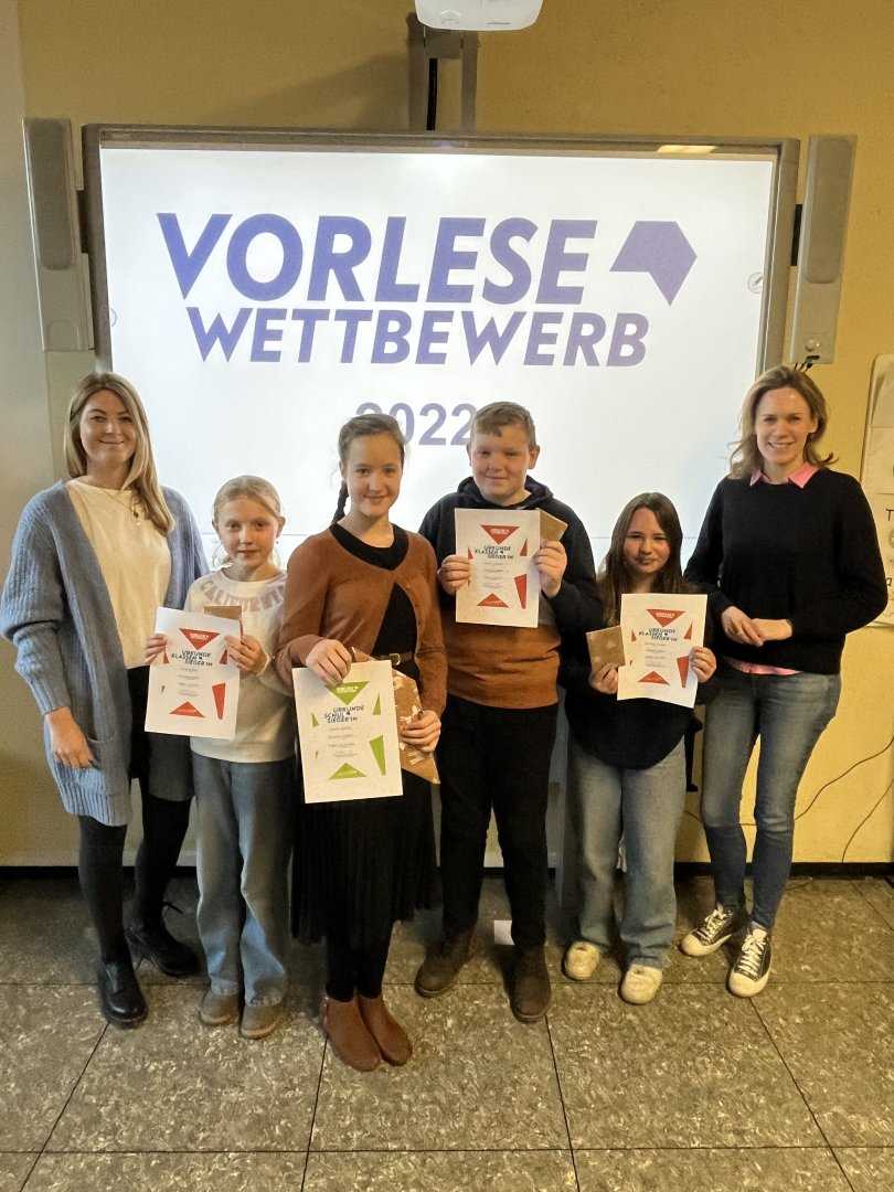 Mit ihrer Wahllektüre „Die Schule der magischen Tiere“ setzte sich Jasmin (6a) gegen Valentina Funkner (6b), Elina Gertner (6a), Martin Schneidt (6a) und weiteren Schülerinnen und Schülern als Schulsiegerin durch. Jede Schülerin und jeder Schüler durfte eine Passage des persönlichen Lieblingsbuches vor der gesamten Klasse präsentieren. Um nun den Schulsieger zu ermitteln, mussten die Schülerinnen und Schüler als weitere Hürde einen Fremdtext lesen, was ihnen trotz Aufregung und Nervosität hervorragend gelang. Die Juroren Stefanie Bolte, Katharina Arkenau und Petra Brokamp bewerteten dabei das Textverständnis, die Textgestaltung und die Lesetechnik. Hierbei zeigte Jasmin Sonntag die stärkste Leseleistung und konnte somit den Titel der Schulsiegerin erringen. Sie wird die Oberschule Cappeln beim Kreisentscheid vertreten.